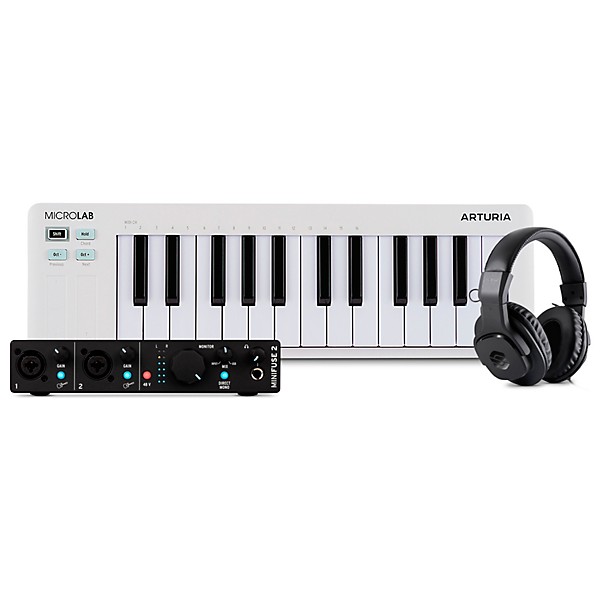 Arturia MicroLab mk3 25-key Keyboard Controller with Minifuse 2 USB Audio Interface & Sterling Audio S302 Studio Headphones White