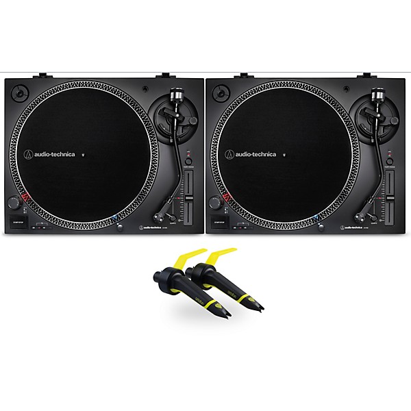 This bundle combines a pair of the Audio-Technica AT-LP120XUSB, a sturdy record player with a selectable phono preamp that allows DJ's to scratch without breaking the bank with an Ortofon Concorde Club Cartridge Twin Pack, which ensures the best possible sound quality for pure vinyl playback and offers increased output voltage for a powerful, energetic sound