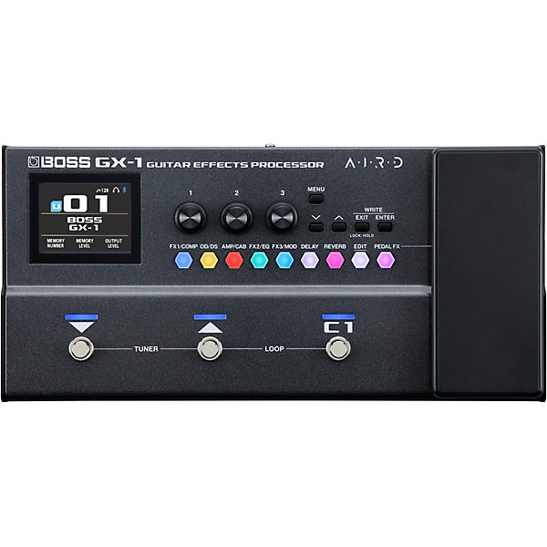 Professional-caliber guitar tone doesn’t have to come with the weight and complexity of a full rig. The BOSS GX-1 is an ultra-portable multi-effects processor that puts 23 expressive AIRD amplifier models and over 140 effects under your feet, ready for practice, recording and performance anywhere. Deep internal processing ensures complex signal chains stay articulate and responsive, while a high-resolution color display and intuitive hexagon-shaped effect buttons make sound shaping fast and visual. With built-in expression control, BOSS Tone Studio app integration, Gear Suite presets and flexible USB and Bluetooth connectivity, the GX-1 delivers a complete, performance-ready guitar rig that adapts easily to your playing environment.