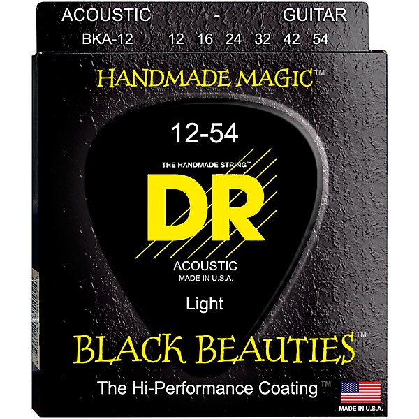 The Black Beauties Acoustic Guitar Strings feature DR's remarkable proprietary K3 Technology coating. Designed to sound as good or better than uncoated strings, these light acoustic strings have more volume, less unwanted overtone, enhanced clarity and improved articulation than standard uncoated strings. Plus, the DR Black Beauties provide protection from corrosion and perspiration for increased longevity as well.