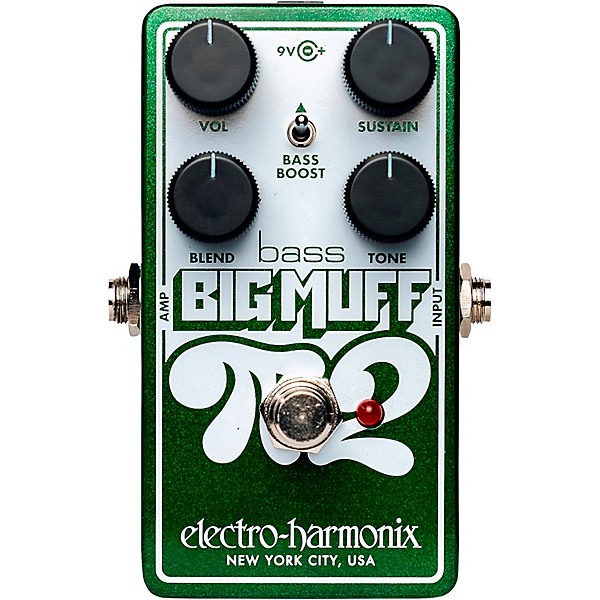 - Modern Big Muff fuzz pedal for bass guitar with expanded low-end control and blend flexibility