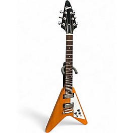When you think of Gibson today, you probably think of a legendary instrument manufacturer that gave the world countless iconic guitar models - but back in the late '50s, Gibson was also known for being very ahead of their time. Take for example, the Flying V. Today, the Gibson Flying V brings to mind images of '70s and '80s hard rock and metal guitarists, but the instrument actually dates back to 1958. In fact, the Flying V was immediately popular with blues guitarists like Albert King, and in the mid-60s it was even played by British Invasion artists like Dave Davies of The Kinks. From signature models to limited run anniversary specials, you've definitely come to the right place for your new Flying V. One of the biggest sellers in this catalog is the Flying V History Electric Guitar. Solidly built with Genuine Mahogany, this model has a thinner V body and neck volute similar to certain 1970s Flying V's and an eye-catching Gibson Cherry lacquer finish. Combined with Grover Kidney tuning machines and '57 and '57 Classic Plus pickups with machine wound coil wiring, the Flying V History Electric Guitar is ideal for rock and blues. It's also limited to only 180 units for all of North America, so don't pass up on this beauty. Another Flying V worthy of any shredder's attention is the Custom Kirk Hammett Flying V Signed/Aged Electric Guitar. One of only 50 made, this piece of art is a true re-creation of Kirk's own 1979 Flying V. A stunning tribute to inarguably the master of heavy metal, the Kirk Hammett Flying V is an axe that will make any Metallica fanatic drool with envy. And here's hoping you use these two choices as a reason to explore the rest of this impressive selection of Flying V guitars. With its distinctive shape and cutting, powerful tone, the Gibson Flying V continues to be a favorite with rockers around the globe. When you're ready to take flight with a Flying V, consider this section your launching pad.