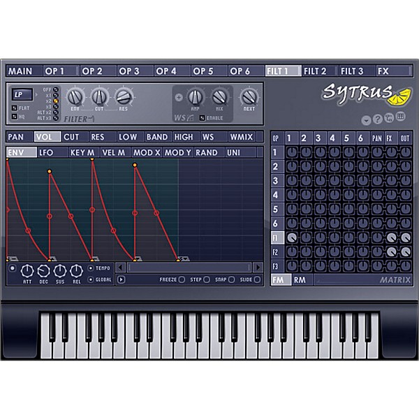 Meticulously crafted, Sytrus delivers ethereal lush pads, sonorous bells, scintillating highs or simply dirty grunge. The 6 user-definable operators can act as independent oscillators for subtractive synthesis, cross-modulate to create complex FM (Frequency Modulation) or RM (Ring Modulation) synthesis or the 256 partial harmonic editor can be used to additively synthesize virtually any timbre you can imagine. With up to 64x oversampling Sytrus delivers 100% epic sound.