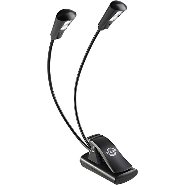 Musicians who practice after sunset or in dark rooms use this double LED music stand light to see their sheet music without missing a note. The model's bendable necks let you aim the light exactly where you want—no more shadows or squinting. It clips onto thick stands, tables, or desks, so you can move it from place to place. You get bright light that won't burn out quickly, and batteries let you take it anywhere. Using the K&M light means you spend more time playing and less time worrying about seeing your music.