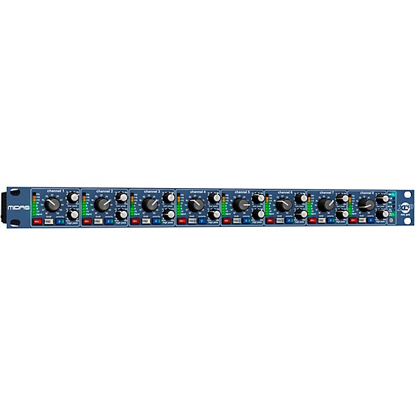 The MIDAS XL48 packs 8 MIDAS XL4 mic preamps into a 1U box, complete with swept high and low pass filters, 8 MIDAS XL8 A/D converters and a super-low jitter 1ppm clock. Additional features include 8-segment LED input meters, individual phantom power, polarity invert, and -20 dB pad. All inputs are on Neutrik XLR and duplicated on 25-way D-sub connectors as standard.