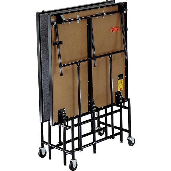 These durable 4 by 8 and 6 by 8 feet mobile stages are easy enough for one person to move. Open the stage deck and the heavy duty casters automatically lift to prevent movement when the stage is in use. Each stage can support a uniform load of over 200 pounds per square foot. Available with hardboard, carpet or polypropylene decks.