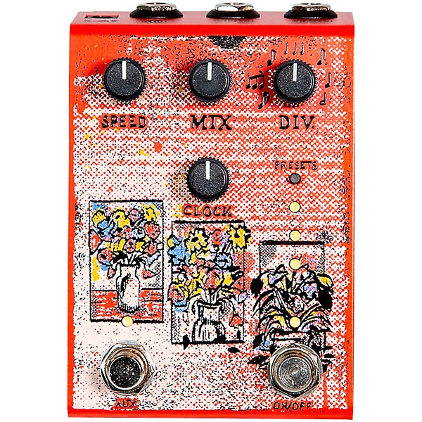 Old Blood Noise Endeavors designed the Setback delay around the idea that reverse can be more than a novelty effect. The Clock control adjusts sample rate from 48kHz–500Hz, changing both fidelity and available delay time, while Speed shifts playback across seven quantized intervals from octave down to octave up. Div handles rhythmic subdivisions independently, allowing the pedal to stay synchronized while you reshape the texture, pitch, and decay character of the reverse signal.