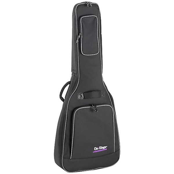 The On-Stage GBA4770 Standard Acoustic Guitar Gig Bag delivers reliable, weather-resistant protection in a streamlined, easy-to-carry design that’s ideal for lessons, rehearsals and everyday transport. Constructed with a heavy-duty 600-denier nylon exterior and durable leather accents, it helps shield your acoustic guitar from moisture, scuffs and minor impacts on the road or at home. Inside, half-inch foam padding and a smooth lining cradle the instrument to protect the finish from scratches and light knocks, while two large exterior pockets provide convenient storage for strings, tuners, capos and small accessories. Dual-pull zippers offer quick, full-length access and backpack straps along with top and side carry handles give you flexible, comfortable carrying options wherever your music takes you.