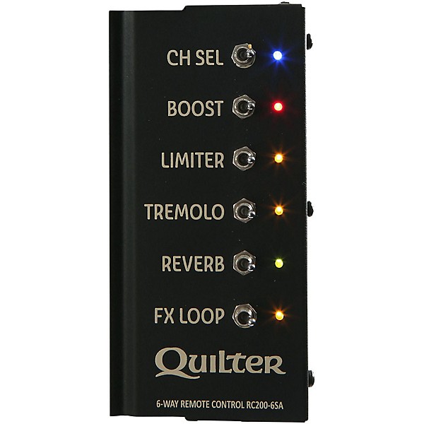 The Steelaire Remote Leg Mount Controller from Quilter controls six amplifier functions, and features bright LED indicators show you which switches are active, a sturdy steel chassis, heavy-duty switches and a 15-ft. cable.