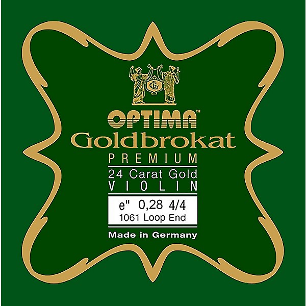 The Optima Goldbrokat Premium 24 Karat Gold, formally under the Lenzner name, is based on the Goldbrokat Premium E string in both quality and sound. This German-made string features a genuine 24K gold coating that is extremely uniform and offers long durability, while producing a warmer and mellow sound compared to the standard Goldbrokat Premium. The Goldbrokat Premium 24K Gold E string is available in three gauges in a choice of ball or loop end.