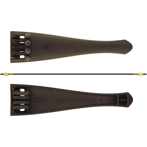 This tailpiece features a high-precision molded carbon composite design for a lightweight tailpiece with added strength. This specially designed lightweight design offers improved resonance for your instrument. The four integrated fine tuners feature fine-threaded screws for smooth and precise tuning. The Otto Musica Carbon Composite Cello Tailpiece includes a braided steel tail gut for added strength and worry-free durability and is available in black finish in three sizes to fit 4/4 thru 1/8-size instruments.