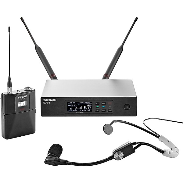 The Shure QLXD digital wireless systems are available in a variety of configurations that accommodate the needs of live presentation professionals from musicians to business leaders to auctioneers and beyond. This is the QLXD14/SM35 system, which includes the QLXD1 body pack transmitter, the QLXD4 digital wireless receiver, the SM35 headset microphone, power supply, 2 AA batteries, two 1/2 wave antennas, 2 BNC cables, zipper bag, 2 BNC bulkhead adapters, rackmount kit, and user guide.