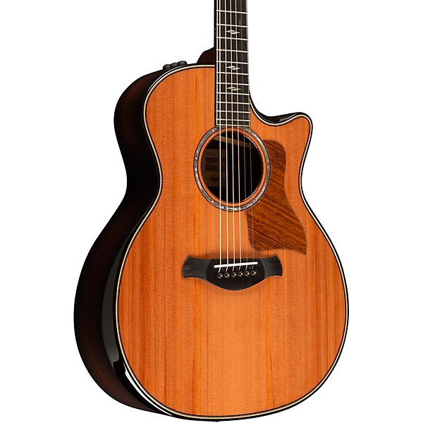 The Taylor 814ce Builder's Edition 50th Anniversary limited-edition Grand Auditorium acoustic guitar combines two phenomenal tonewoods—Indian rosewood and sinker redwood—to deliver a kaleidoscopic range of tones. This special 50th anniversary model pairs the warm, rich lows of Indian rosewood with the cedar-like warmth and excellent projection of sinker redwood. Together, they produce remarkable tonal complexity that's enhanced by Taylor's advanced V-Class bracing. Visually striking touches like the abalone rosette, gold tuners and Kona burst edge over rosewood celebrate Taylor's five decades of guitar innovation.