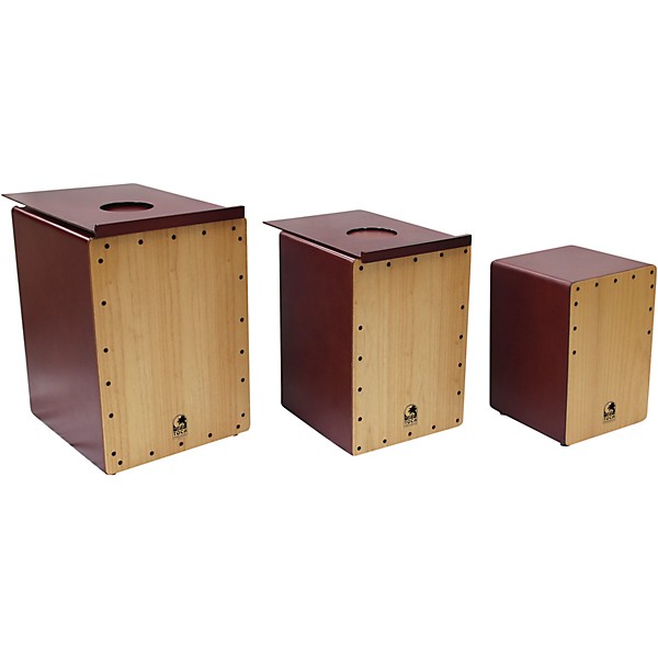 - Three-piece nesting cajon set for compact transport and ensemble performance