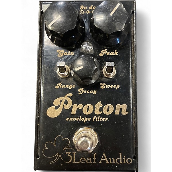 Used 3 Leaf Audio Proton Effect Pedal in fair condition, offering classic envelope filter tones ideal for funk, rock, and experimental sounds. Features include Gain, Peak, and Decay controls for shaping the filter response, along with a Mode switch to select filter sweep direction. True bypass design ensures clean signal when off. Shows visible cosmetic wear but functions properly. A solid option for players seeking vintage-inspired auto-wah character with analog warmth and dynamic response.