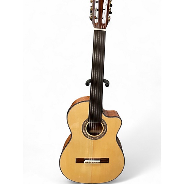 Used Agile Double Cut Natural Solid Body Fretless Acoustic Electric Guitar in excellent condition, featuring a sleek double cutaway body, solid mahogany construction, ARTEC pickups, and a set mahogany neck with rosewood fingerboard. Enjoy smooth playability with 22 frets and a 24.75" scale length. The natural finish highlights the wood grain for a classic look, reliable tuners ensure great tone and tuning stability—perfect for players seeking performance and style.
