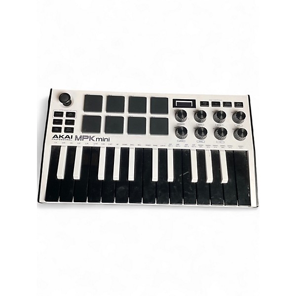 Used Akai Professional MPK Mini MKII MIDI Controller in great condition—an ultra-compact, bus-powered USB MIDI solution for producing on the go. Features 25 velocity-sensitive mini keys, 8 MPC-style backlit pads, and 8 assignable knobs for hands-on control of drums, instruments, and effects. Includes a built-in arpeggiator and 4-way joystick for pitch/mod control. Compatible with Mac/PC and works with most DAWs via USB.