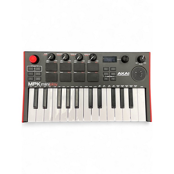 Used Akai Professional MPK Mini Play MIDI controller in great condition, perfect for portable music production. Features 25 velocity-sensitive mini keys, 8 backlit MPC-style pads, 4 assignable knobs, and a built-in speaker for on-the-go jamming. Includes onboard sounds and drum kits, plus USB MIDI for controlling DAWs, virtual instruments, and hardware. Compact, lightweight, and bus-powered via USB, it’s an ideal grab-and-go keyboard for studio or travel.