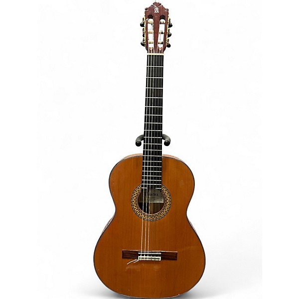 Used Alhambra 9 P Natural Classical Acoustic Guitar in good condition, featuring a solid Canadian cedar top, Indian rosewood back and sides, and an ebony fingerboard for rich, balanced tone. With a Spanish heel neck joint and high-quality craftsmanship, this full-sized guitar offers excellent projection and clarity, ideal for intermediate to advanced players. The gloss natural finish enhances its elegant appearance, while precise intonation and smooth playability make it a standout classical instrument.