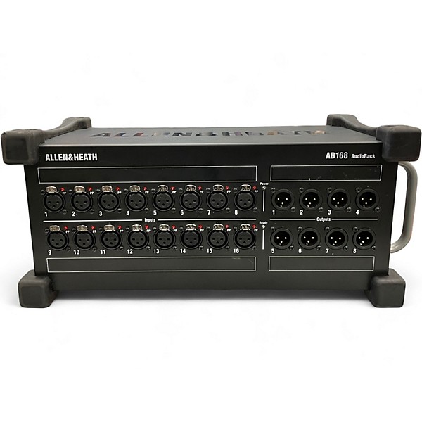 Used Allen & Heath AB168 digital stage box in great condition, built for rugged live and installed sound. Featuring 16 recallable XLR mic/line inputs and 8 XLR line outputs, it connects via a single dSNAKE/Cat5 run for clean, reliable audio and fast setup. Ideal for pairing with compatible Allen & Heath mixers to expand I/O on stage or in a rack, delivering professional performance and dependable operation show after show.