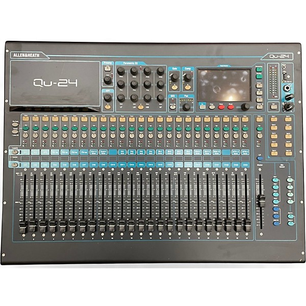 Used Allen & Heath QU-24 Digital Mixer in great condition, featuring 24 mono inputs, 3 stereo inputs, and 25 motorized faders. It offers 24 onboard mic preamps, 10 Mix outputs, and a 5" touchscreen for intuitive control. Includes built-in multitrack USB recording and compatibility with the Qu-Pad iPad app for remote mixing. Ideal for live sound and studio applications, this powerful and reliable console delivers professional-grade audio flexibility in a compact design.