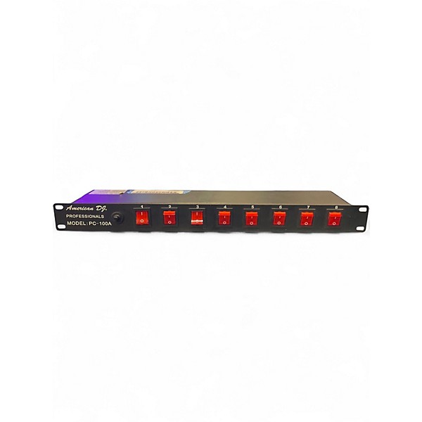 The Used American DJ PC-100A in great condition is a reliable 8-switch power control center ideal for DJs and stage setups. Featuring 8 lighted rocker switches on the front and 8 grounded 3-prong AC sockets on the rear, it supports a maximum load of 15 amps or 1800 watts. Easily mounted in a standard 19-inch rack, this unit provides convenient, centralized power management for lighting and audio equipment, ensuring smooth performance every time.