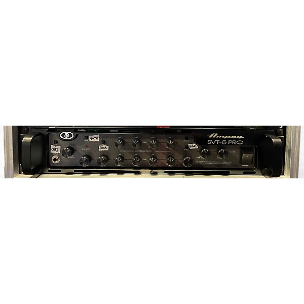Used Ampeg SVT-6 Pro Bass Amp Head in great condition, delivering 1100 watts at 4 ohms for powerful, punchy tone. Features a 4-band semi-parametric EQ, Tube Voltage control, and two 12AX7 preamp tubes for classic Ampeg warmth with modern flexibility. Built for serious stage performance, its MOSFET power amp ensures reliability and clarity. Perfect for bassists seeking a professional-grade amp head with versatile tonal shaping and rugged construction.