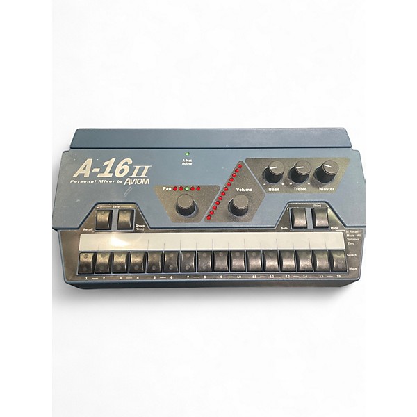 Used Aviom A-16 II Digital Personal Mixer in great condition, perfect for creating custom in-ear monitor mixes on stage or in the studio. Features 16 channels of digital audio with intuitive level and pan controls, plus master volume and EQ shaping for quick, musician-friendly adjustments. Connects to Aviom A-Net distribution systems for low-latency performance and reliable operation. A proven solution for churches, touring rigs, and rehearsal spaces needing flexible personal monitoring.