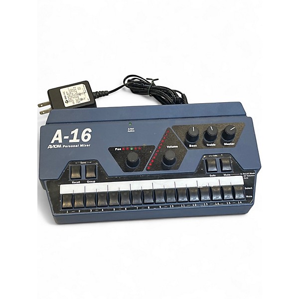 Used Aviom A16 Personal Mixer in excellent condition. This 16-channel unpowered mixer features easy-to-use controls with individual level and pan for each channel, plus a master volume and tone control. Ideal for personalized monitoring in live or studio environments, it connects easily using standard Cat-5e cables via A-Net technology. Compact and reliable, the A16 allows each performer to control their own mix for a more precise and satisfying monitoring experience.