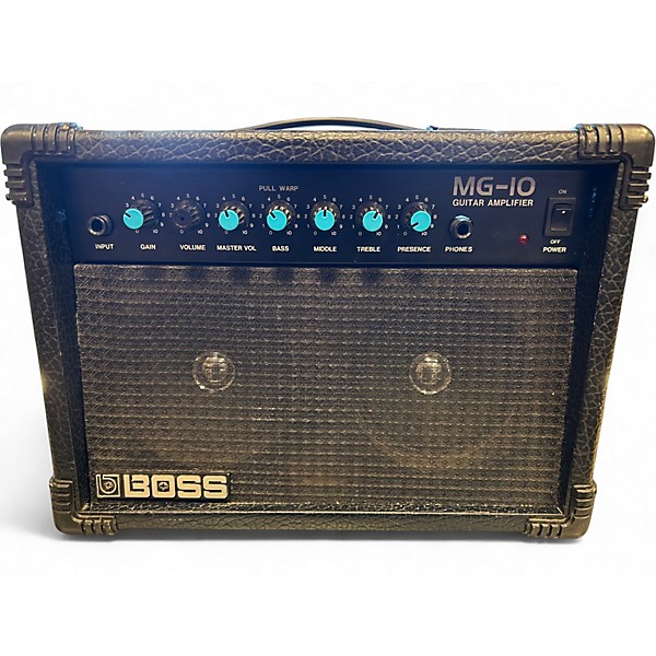 This used BOSS MG10 battery-powered guitar amp is a compact, grab-and-go practice solution in fair condition, showing noticeable cosmetic wear but ready to play. It delivers 10 watts through a 6.5" speaker, with simple front-panel controls for gain, volume, and tone shaping, plus a headphone/recording output for quiet sessions. Lightweight and portable, it’s ideal for beginners, travel, and quick rehearsals where convenience matters.