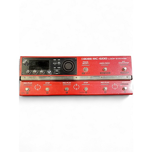 Used BOSS RC-600 Loop Station Pedal in Good condition, offering six stereo tracks with individual controls, 32-bit AD/DA conversion, and 13 hours of stereo recording time. This powerful floor-based looper features 99 memory slots, 200 onboard rhythms, and extensive I/O, including XLR and MIDI. Perfect for live performers and studio musicians seeking advanced looping capabilities in a rugged, intuitive design.