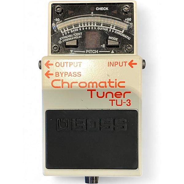 Used BOSS TU-3 Chromatic Tuner Pedal in great condition. This rugged stompbox features a 21-segment LED meter with brightness control, accurate tuning modes including Chromatic and Guitar/Bass, and a reliable flat tuning function. Built for the stage, it mutes your signal for silent tuning and supports tuning for 7-string guitars and 6-string basses. Powered by 9V battery or PSU (not included), it's a must-have utility pedal for any serious player.