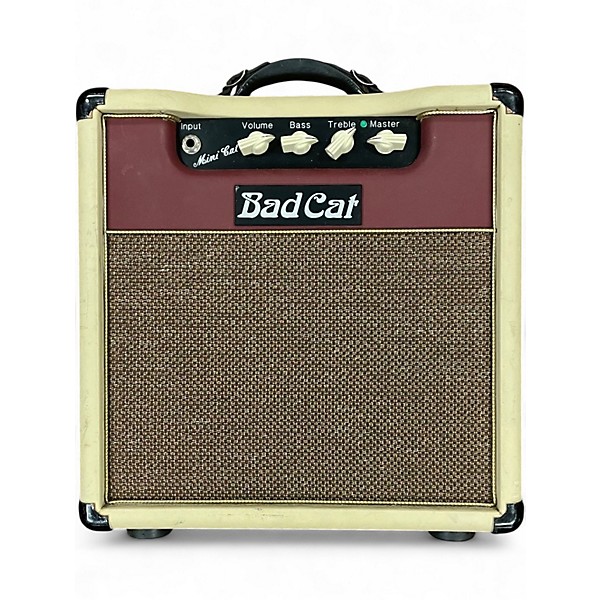 Used Bad Cat Mini Cat 5W 1x10 Tube Guitar Combo Amp in Good condition. This compact, all-tube amplifier delivers 5 watts of vintage-style tone through a single 10-inch speaker, ideal for home practice or studio use. Features include simple volume and tone controls, EL84 power tube, and rugged handwired construction. Known for its warm, responsive sound and touch sensitivity, the Mini Cat is perfect for players seeking boutique tube tone in a portable package.