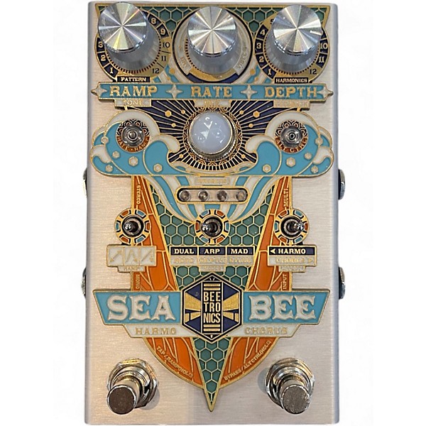 Used Beetronics FX Sea Bee Dynamic Harmonic Tremolo pedal in great condition. This boutique analog pedal features a unique tremolo engine with 6 modulation modes, adjustable speed, depth, and dynamic response. It offers lush, warbly textures with interactive harmonic movement that reacts to your playing. Handcrafted in the USA, it runs on standard 9V power and delivers truly expressive tremolo tones perfect for experimental and classic guitar sounds alike.