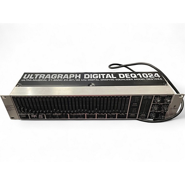 Shape your sound with this used Behringer DEQ1024 Ultragraph Equalizer in good condition, a reliable tool for live rigs and studio setups. It features a stereo 24-band graphic EQ with 1/3‑octave bands, plus low-cut filters and level controls for precise tonal sculpting and feedback taming. Ideal for mains, monitors, or recording chains, it delivers clear, musical adjustments and straightforward operation in a rugged rackmount design.