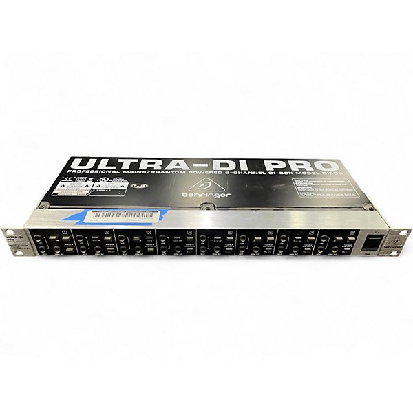 Used Behringer DI800 Ultra-DI Pro 8-Channel Direct Box in great condition. This professional DI unit offers 8 ultra-low noise channels with servo-balanced inputs and outputs, perfect for studio or stage use. Each channel features a ground lift switch and a 20 dB pad for optimal signal control. Operates on standard 120V power. Rugged rackmount design ensures durability and reliability for consistent performance in any audio setup.