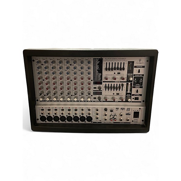 Used Behringer PMH880S Powered Mixer in good condition, delivering 800 watts of power (2 x 400W stereo) with 10 channels for versatile mixing. Features include onboard 24-bit FX processor with 100 presets, 7-band graphic EQs, and built-in feedback detection for clear sound. Ideal for live performances or rehearsals, this reliable mixer offers XLR and 1/4" inputs, phantom power for condenser mics, and powerful integrated amplification to keep your sound strong and consistent.