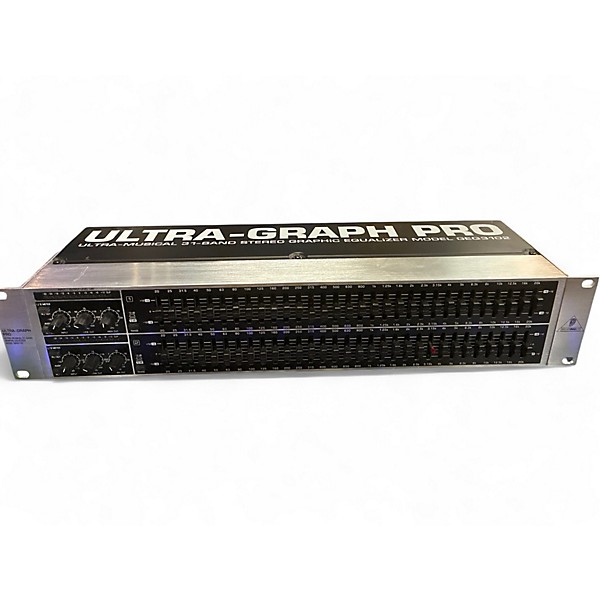 Shape your sound with this Used Behringer ULTRA GRAPH PRO Equalizer in great condition, a reliable rackmount graphic EQ ideal for live rigs, studios, and installs. Featuring dual-channel operation with 31 bands per channel (1/3-octave), it delivers precise tone control and feedback-fighting flexibility. Balanced XLR and 1/4" I/O provide easy integration with mixers, amps, and processors, while rugged construction and smooth faders make it ready for consistent, professional use.