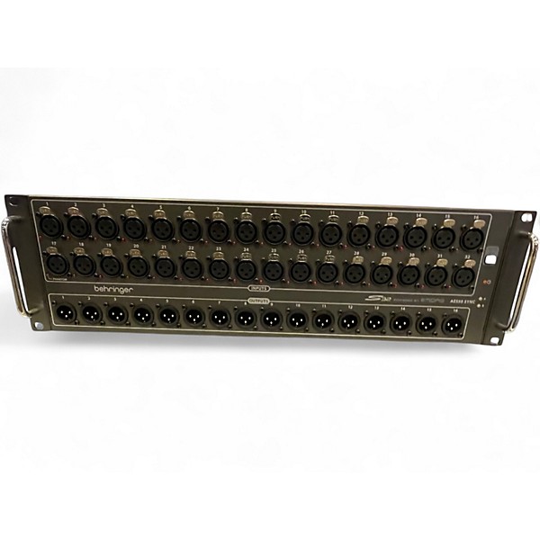 The Behringer S32 Digital Stage Box is a 32-input, 16-output I/O for digital mixing with MIDAS-designed mic preamps, perfect for expanding your X32 setup. Featuring remote operation over shielded Cat5e cable up to 328 ft via AES50 protocol, the S32 delivers ultra-low latency and high-definition audio quality. This used unit is in excellent condition and ideal for live sound or studio environments seeking professional-grade audio connectivity and reliability.