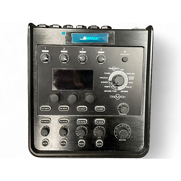 Used Bose T4S ToneMatch Mixer in good condition, offering powerful sound control in a compact design. Features 4 channels with high-quality preamps, studio-grade effects, and intuitive EQ presets for live performance and recording. Includes USB interface for easy connection to computers and real-time adjustments with the bright, LED-lit interface. Designed for portability and professional audio, the T4S delivers the clarity and versatility expected from Bose in a reliable, rugged unit.