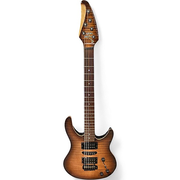 Used Brian Moore Guitars C90 FLAME BURST Solid Body Electric Guitar in great condition, featuring a beautifully contoured mahogany body with a flame maple top, bolt-on maple neck, and rosewood fingerboard. This C90 offers H-S-H pickups for versatile tone, a 5-way selector switch, and a tremolo bridge for expressive playability. Known for its sleek design and superior craftsmanship, this guitar delivers excellent tone and playability for discerning musicians seeking performance and style.