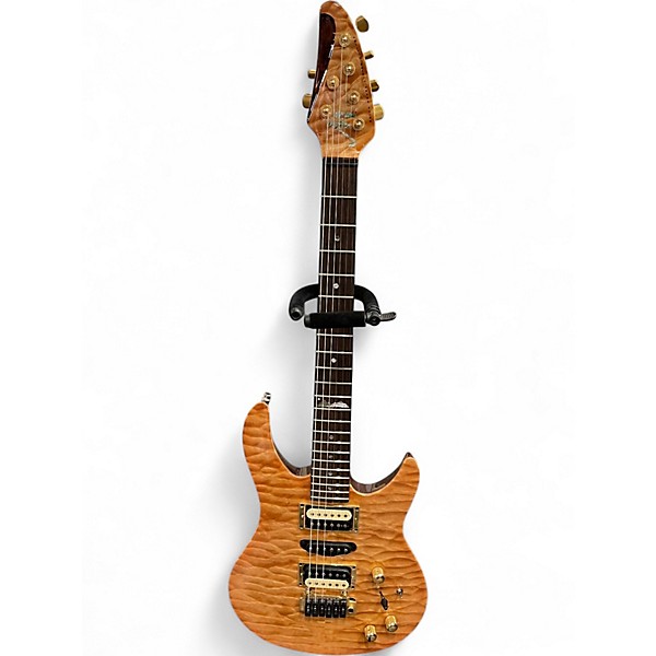 Discover the refined tone and boutique craftsmanship of this Used Brian Moore C90P13 Flame Antique Natural solid body electric guitar in great condition. Showcasing a stunning flame-maple top in an Antique Natural finish, it delivers versatile electric tones with dual humbuckers and a smooth, fast-playing neck. The comfortable contoured body, 6-string configuration, and responsive controls make it ideal for everything from clean articulation to saturated lead work—an eye-catching, gig-ready performer with premium feel.