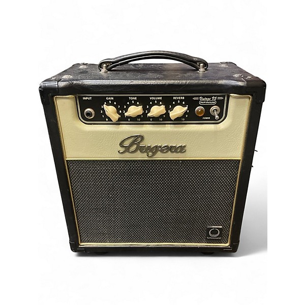 Used Bugera INFIUM Guitar Combo Amp in Good condition, featuring 22 watts of all-tube power and a single 12" speaker for warm, responsive tone. Equipped with INFINIUM Tube Life Multiplier technology for extended tube life and consistent performance. Offers two independent channels with reverb and a classic 3-band EQ. Ideal for blues, rock, or jazz players seeking vintage tone with modern reliability. Perfect for practice, small gigs, or studio sessions.