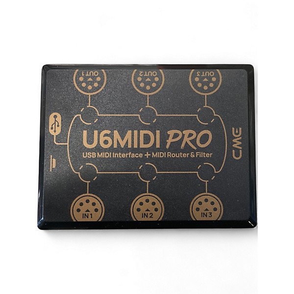 Used CME U6MIDIPRO MIDI Interface in great condition—an ultra-compact USB MIDI hub for reliable studio and live connectivity. Features 6 independent MIDI I/O ports (up to 96 channels) plus USB bus power for simple plug-and-play operation with Mac and Windows systems. Ideal for linking multiple keyboards, controllers, and sound modules with solid timing and low-latency performance in a rugged, portable unit.
