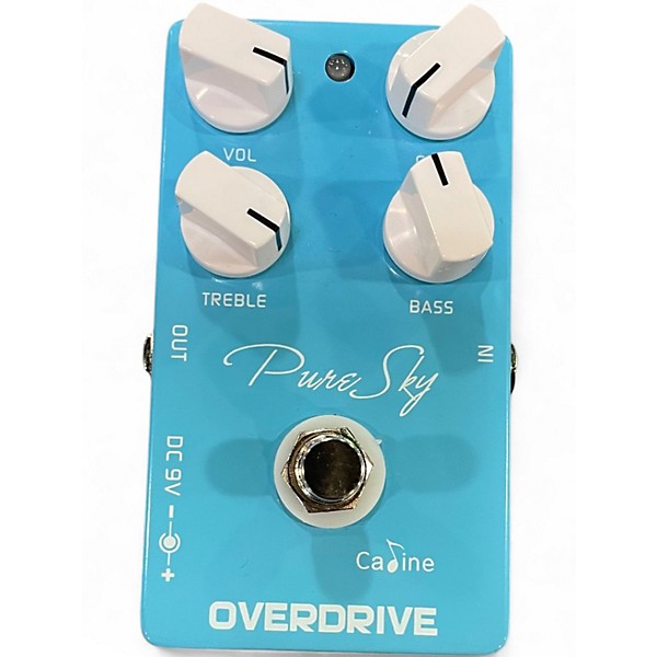 The used CALINE PURE SKY Overdrive Pedal delivers warm, transparent tone with smooth overdrive, great for blues, rock, and beyond. Featuring Volume, Gain, Treble, and Bass controls, it offers versatile shaping and classic sound in a sturdy aluminum alloy casing. True bypass ensures signal integrity. In good condition, this pedal is perfect for guitarists seeking dynamic response and tonal clarity without coloration. Powered by 9V DC (not included), it's ready for your pedalboard.