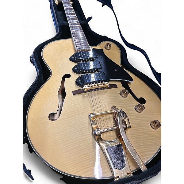 Used Carlo Robelli ES-500 in a classy cream finish, this great-condition hollow body electric delivers warm, resonant tone with classic semi-hollow style. Featuring a comfortable double-cutaway body, dual humbucking pickups, a 3-way selector, independent volume and tone controls, and an adjustable bridge with stopbar tailpiece, it’s ready for jazz, blues, and rock. Smooth playability and vintage-inspired looks make it a standout value for any stage or studio.