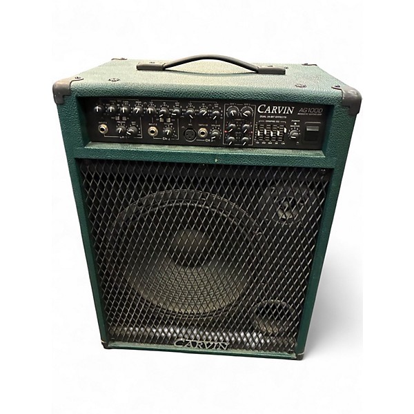 HTML: Used Carvin AG100D Guitar Combo Amp in great condition, delivering 100 watts of clear, dynamic power through a 3-channel setup with a 12" speaker and tweeter. Designed for acoustic-electric guitars, it features built-in digital effects including reverb and chorus, plus an XLR input for vocals or mics. Perfect for gigs or studio use, the AG100D delivers rich tone and versatile control in a rugged, portable design built to perform.