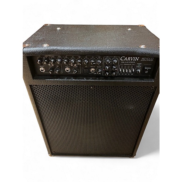 Used Carvin AG100D Acoustic Guitar Combo Amp in good condition, delivering 100 watts of power through a 3-channel setup. Features include a 12" speaker with a tweeter, built-in digital effects, EQ controls, and XLR input for microphones—ideal for solo performers or small gigs. This amp provides warm, natural acoustic tone reproduction and dependable performance in a solid, portable design. Great choice for players seeking quality sound and flexibility at an affordable price.