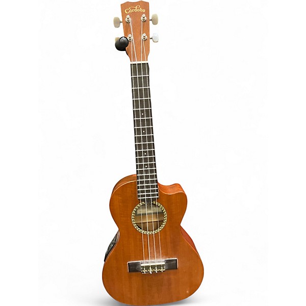 Discover warm, resonant tone in a compact package with this used Cordoba 20TMCE Tenor Ukulele in Natural finish, rated Good condition. A comfortable tenor scale delivers fuller projection, while the built-in pickup and onboard preamp make it stage- and studio-ready. Features include a cutaway body for easier upper-fret access, standard soprano-style tuning (GCEA), smooth playability, and classic Cordoba craftsmanship—ideal for players who want acoustic richness with plug-in convenience.