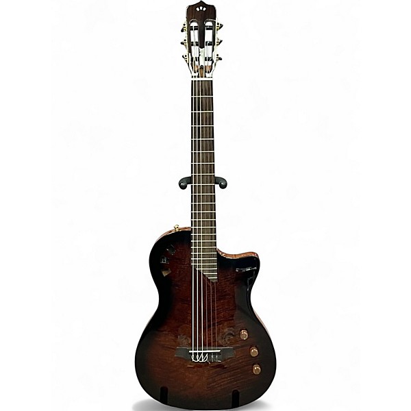 Used Cordoba Stage Nylon Acoustic Edge Burst Classical Guitar in great condition. This innovative stage-ready nylon-string features a solid Spruce top with a striking Edge Burst finish, chambered Mahogany body for feedback resistance, and a comfortable thin-body design. Equipped with Cordoba’s Stage Pickup System, it delivers rich, natural acoustic tone for live performance. With a 25.6" scale length and 50mm nut width, it offers excellent playability for both classical and modern styles.